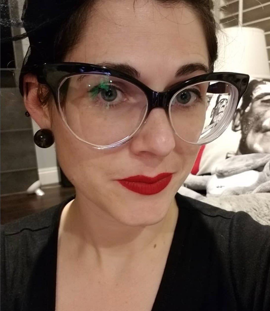 Observant readers will note the Frankenstein pillow in the background of my photo. Our house certainly has a theme….